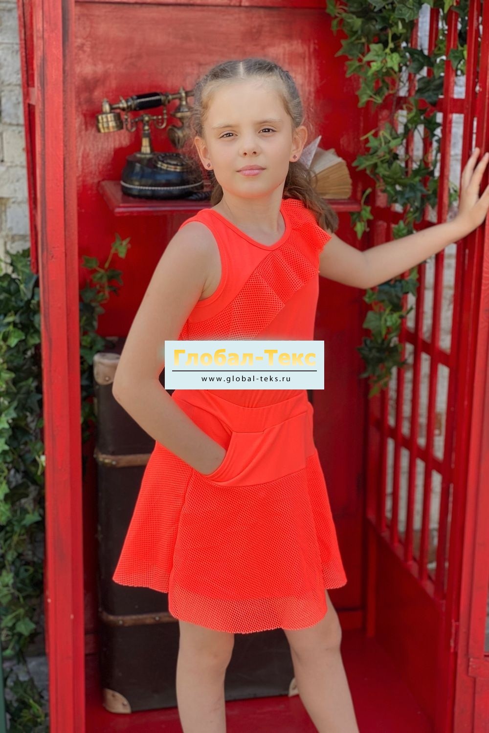 Костюм на девочку "Пинк" (туника+лосины, корал-меланж) №МРЛ-КСТ.1257