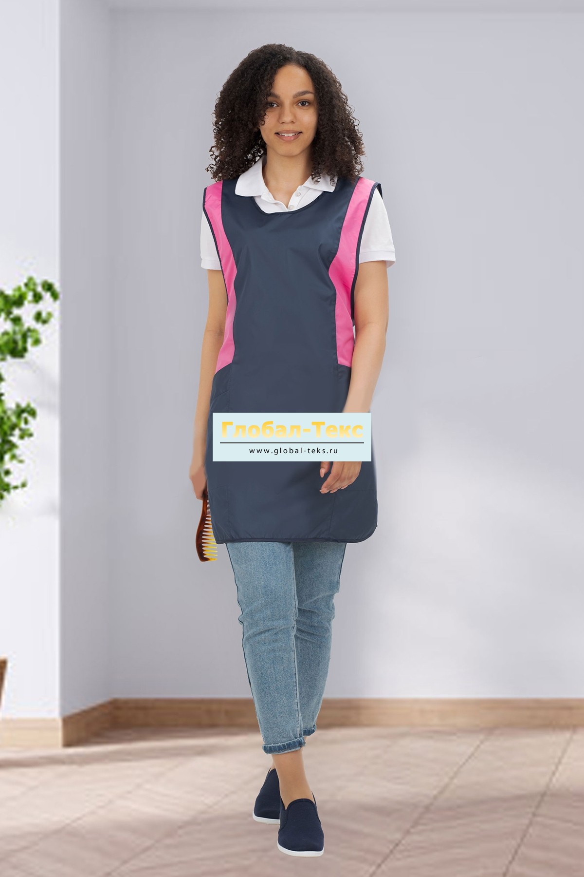 Фартук для парикмахера "Модерн" (темно-синий/розовый) №УФР-ТР-103