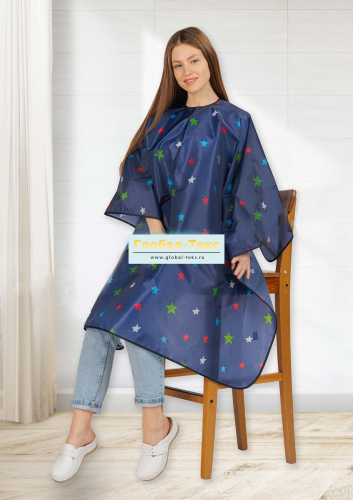 Накидка для парикмахерских услуг "Эконом" (синие звезды) №УФР-ТР-94-7