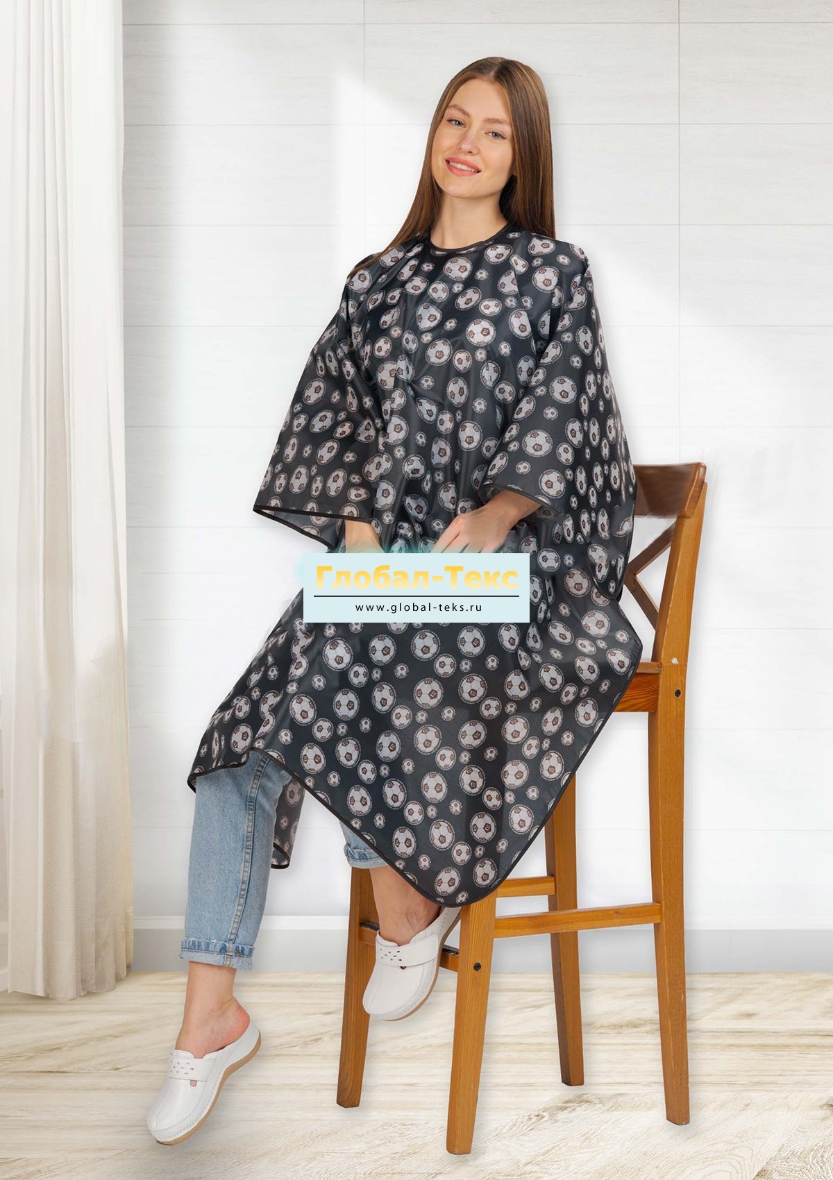 Пеньюар для парикмахера "Модерн" (василек/девушка, 1,4х1,5 м.) №УФР-ТР-520