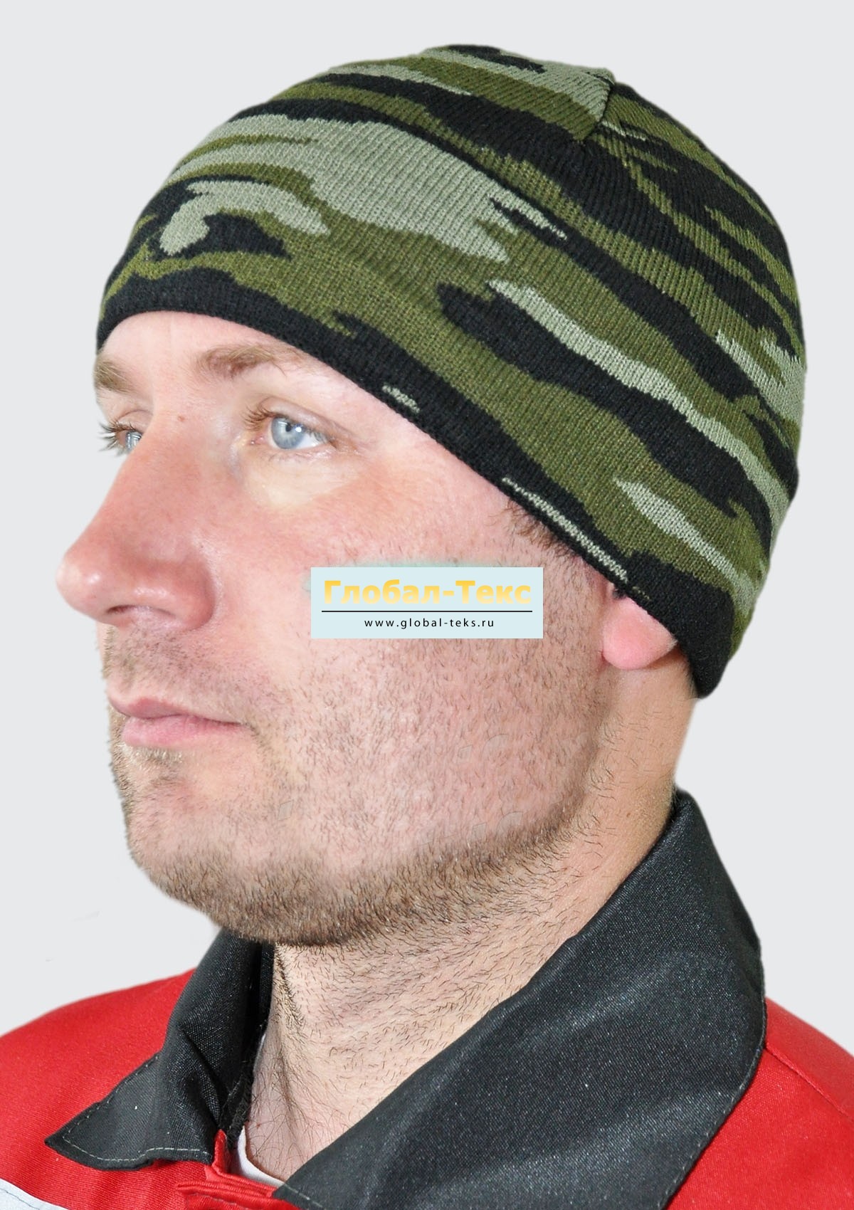 Шапка с отворотом трикотажная КМФ (лес) трикотажное полотно №УФР-Р-89