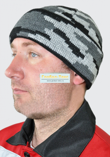 Шапка с отворотом трикотажная КМФ (пиксель) Трикотажное полотно (камуфляж) №УФР-Р-90