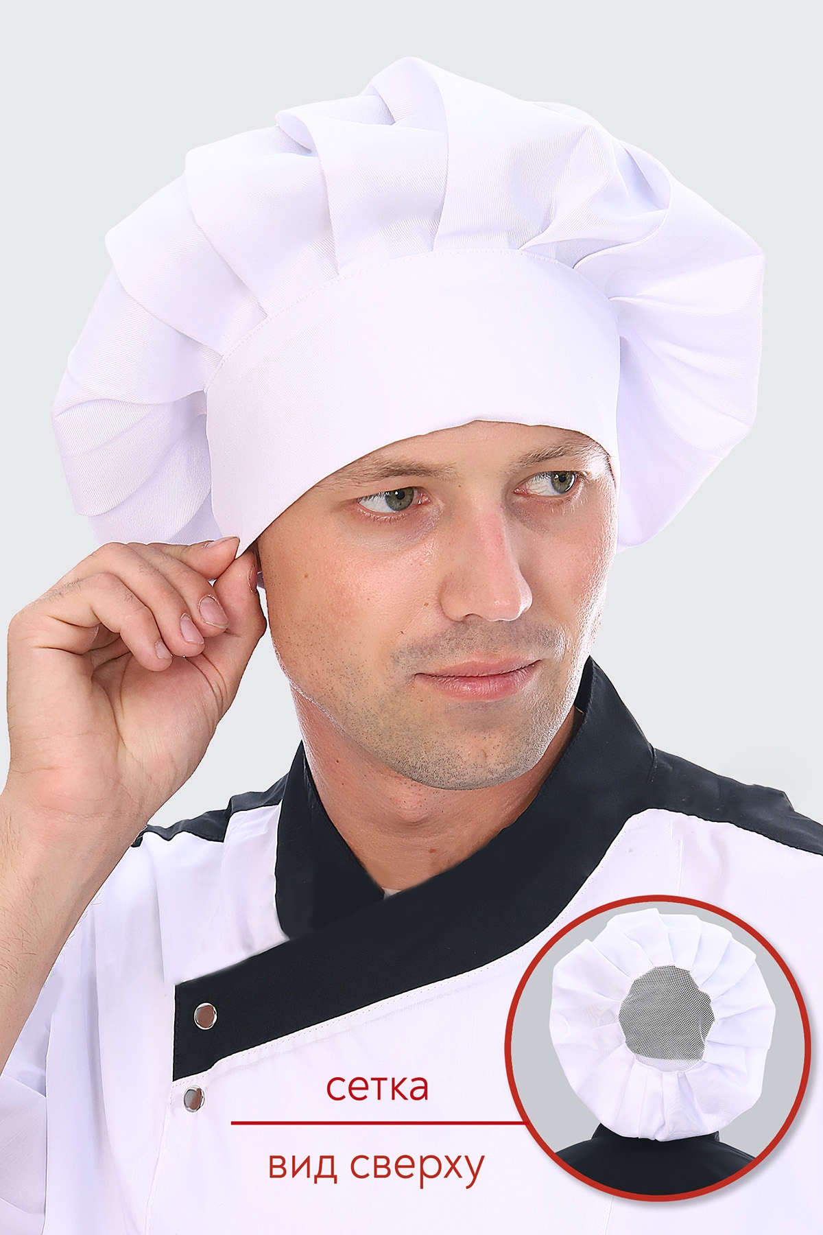 Колпак повара "Гриб" с сеткой мужской (твил, белый) №УФР-ТР-854