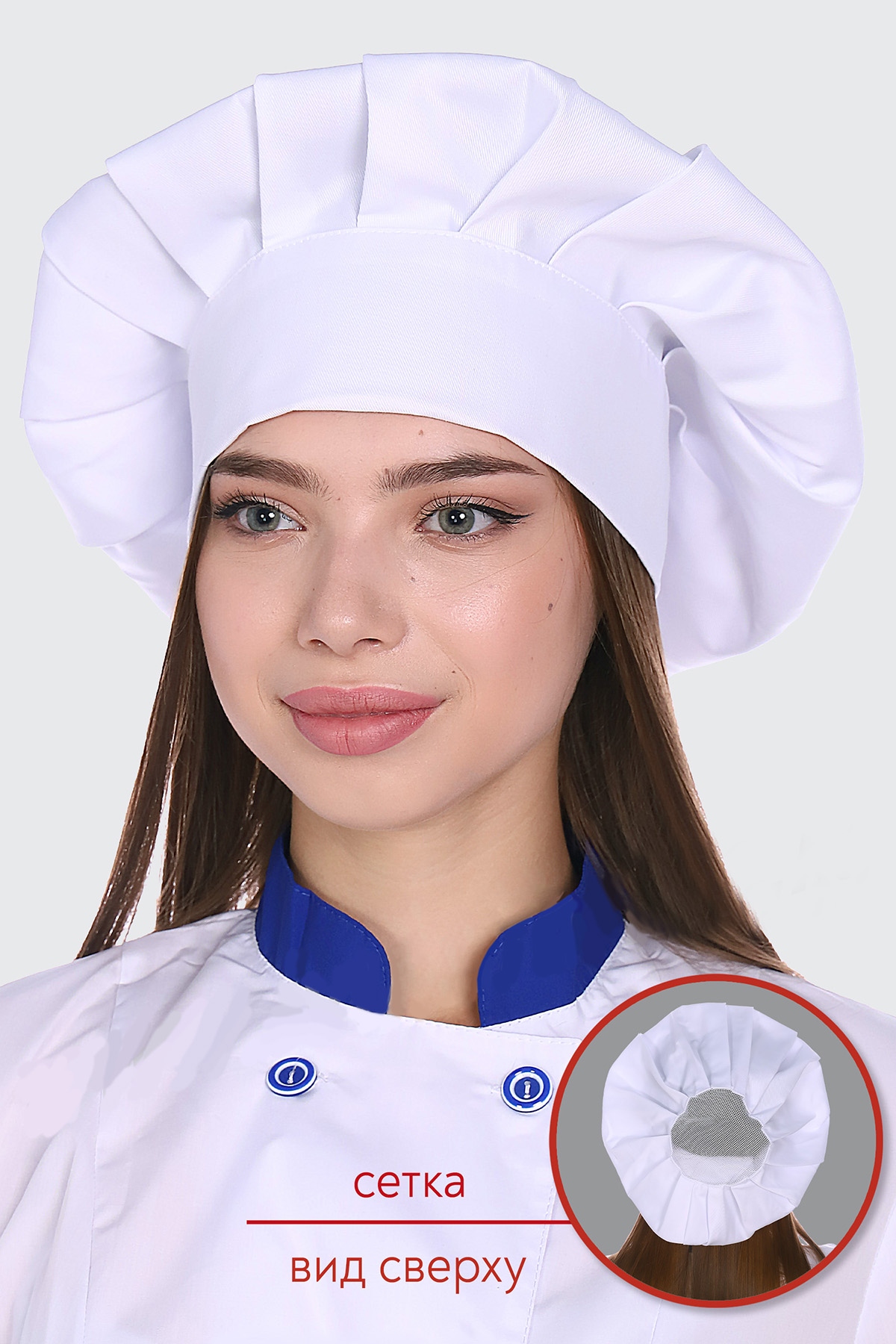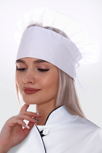 Колпак повара "Гриб" с сеткой женский (тиси, белый) №УФР-ТР-0558