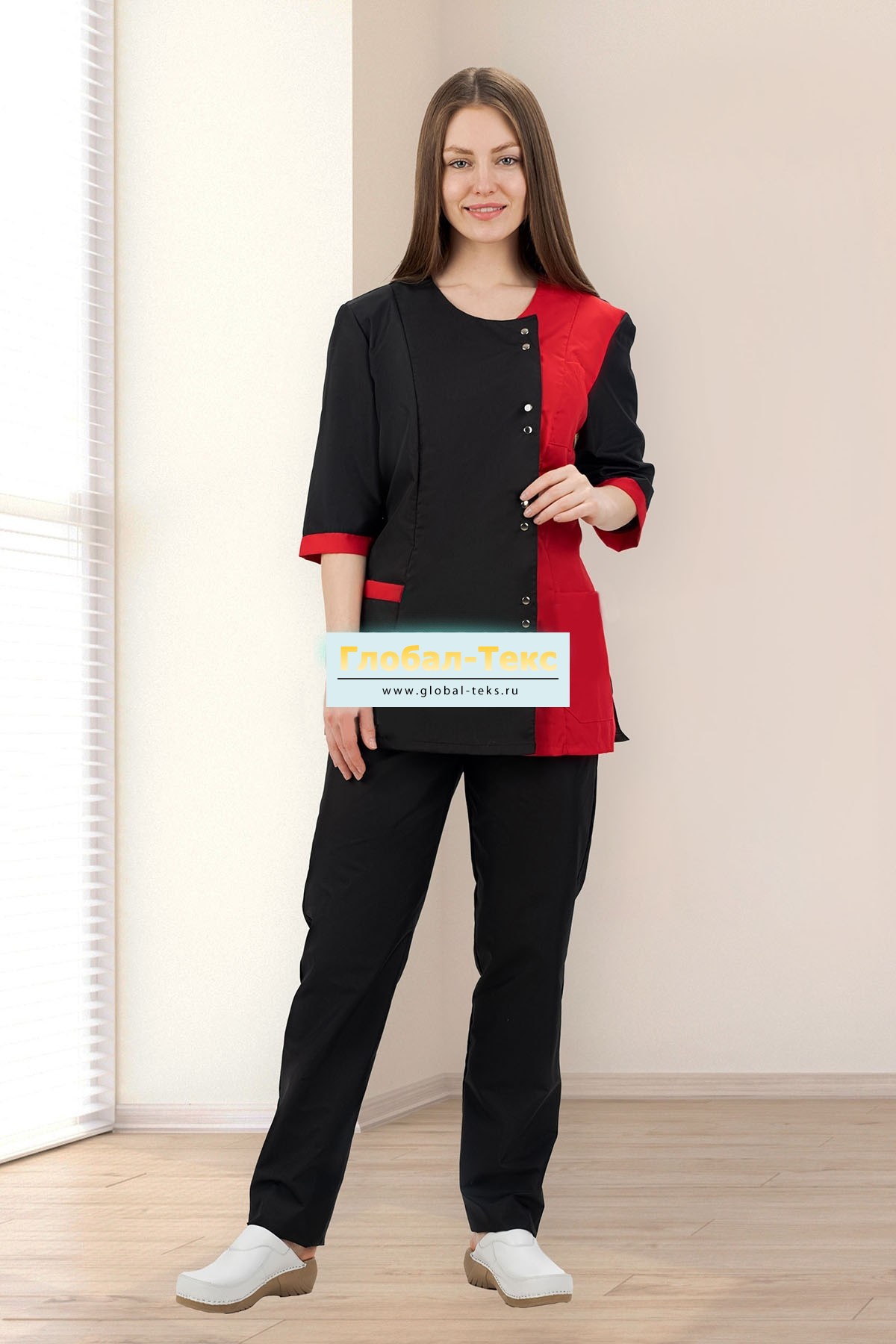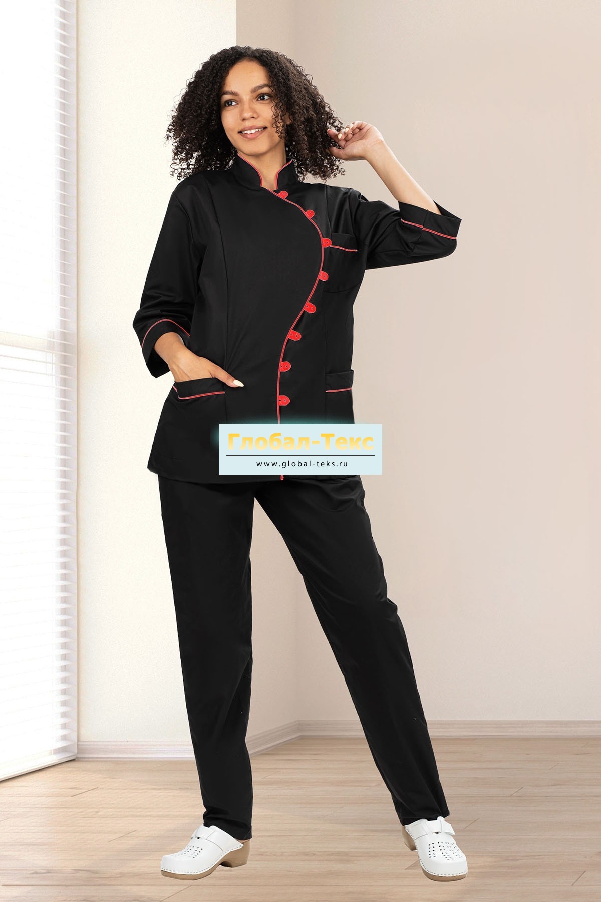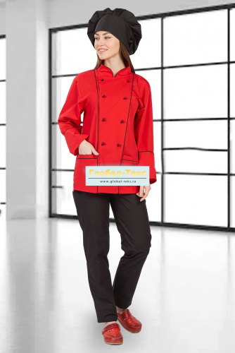 Костюм повара женский "Злата" (черный/красный) №УФР-ТР-200-1