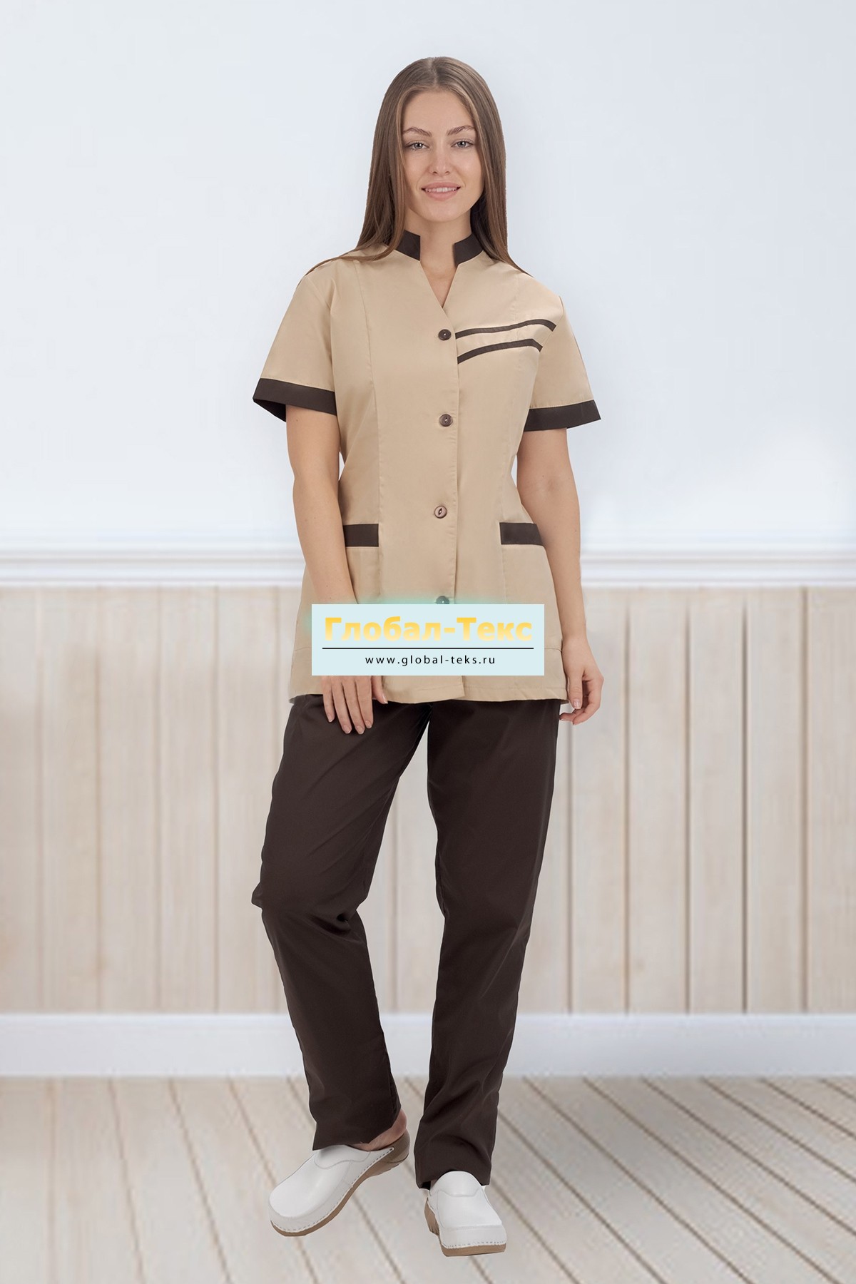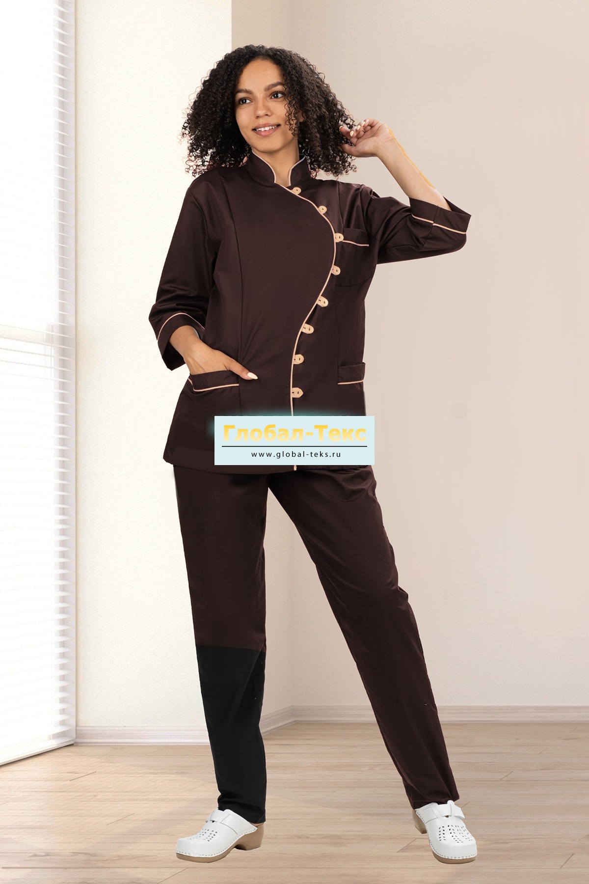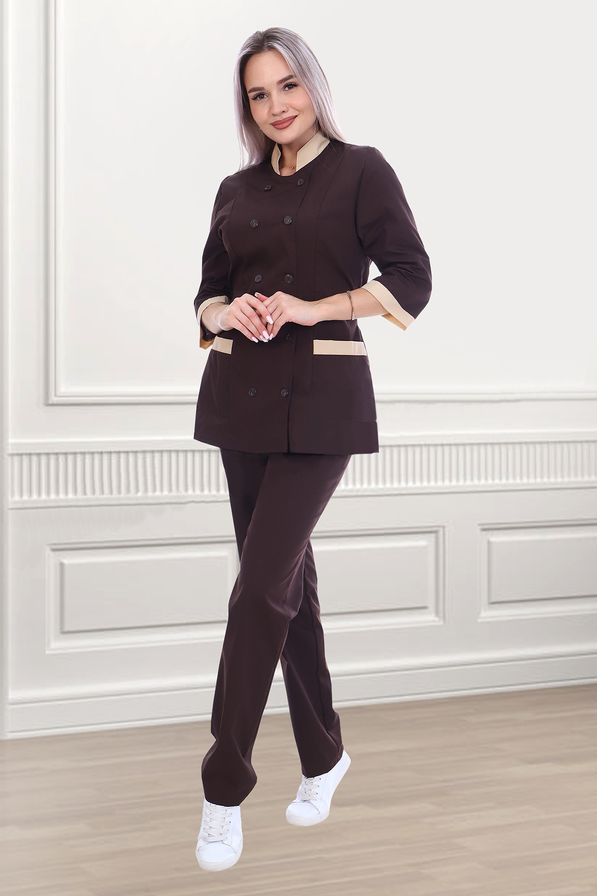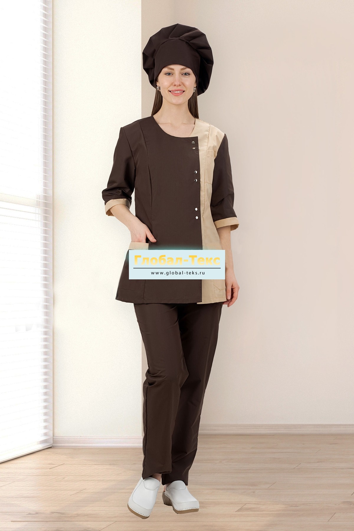 Костюм повара женский "Злата" (коричневый/бежевый) №УФР-ТР-200
