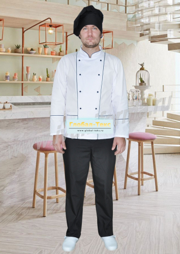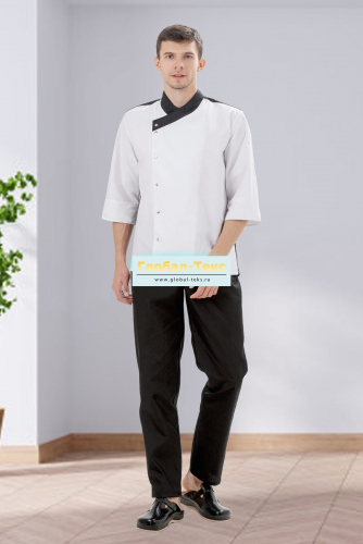 Куртка повара мужская "Джано" (белый/черный) №УФР-ТР-7721