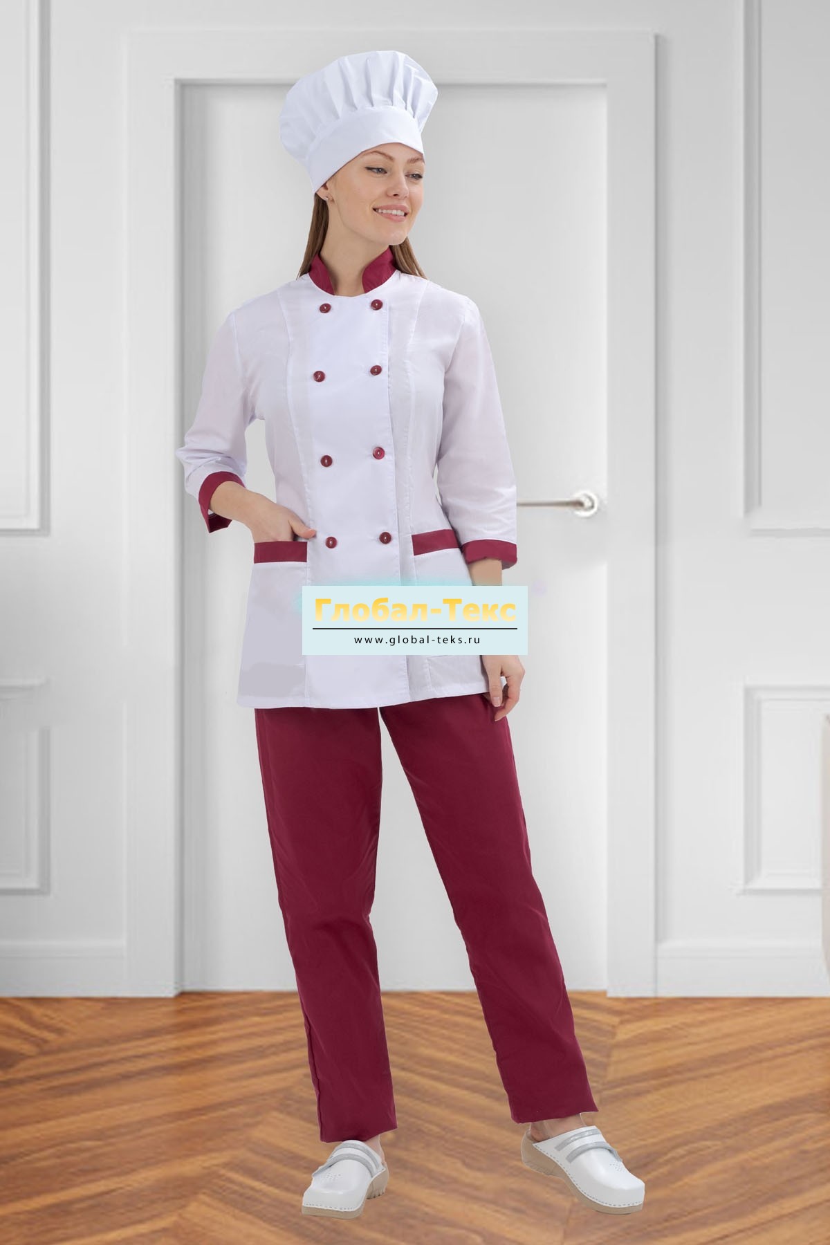 Костюм повара женский "Анабель" ТиСи (бордовый) №УФР-Р-641-1