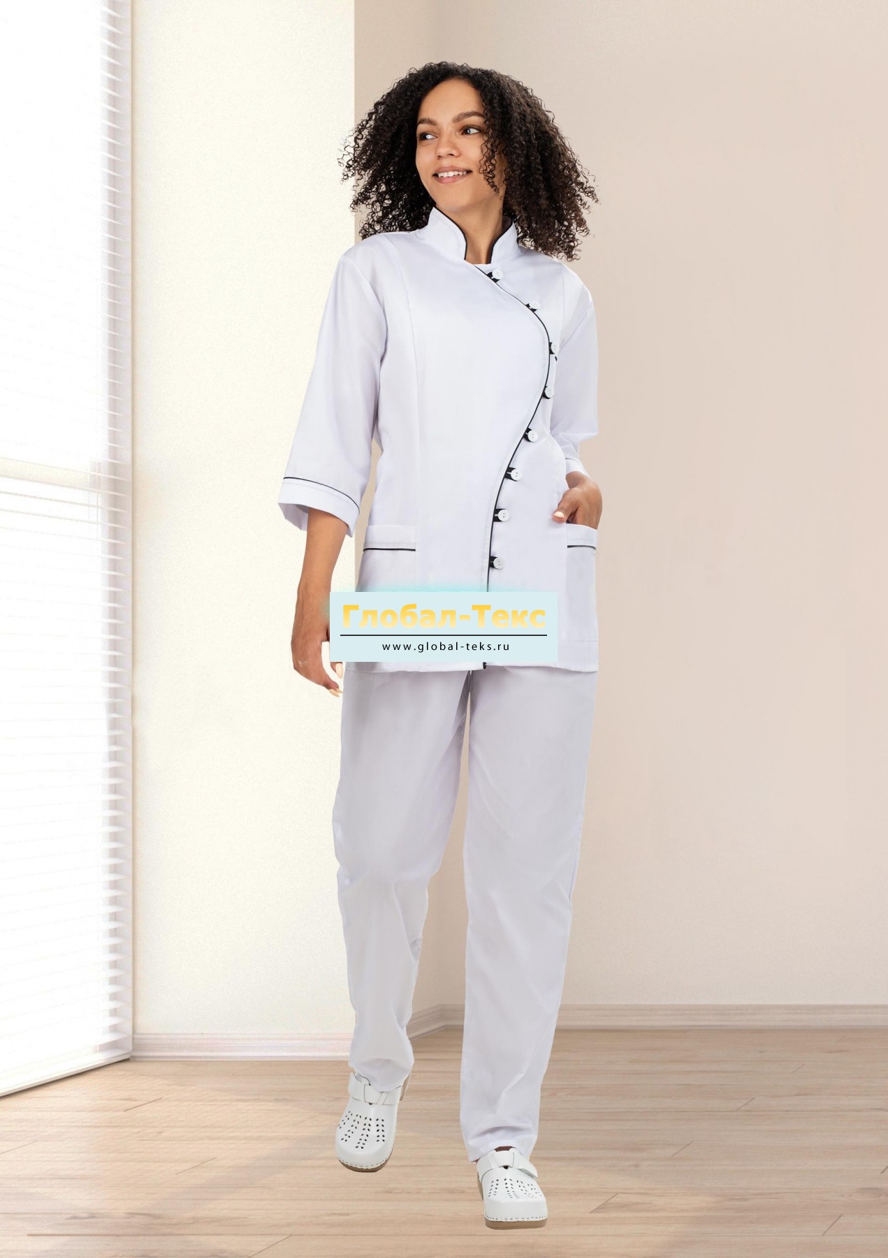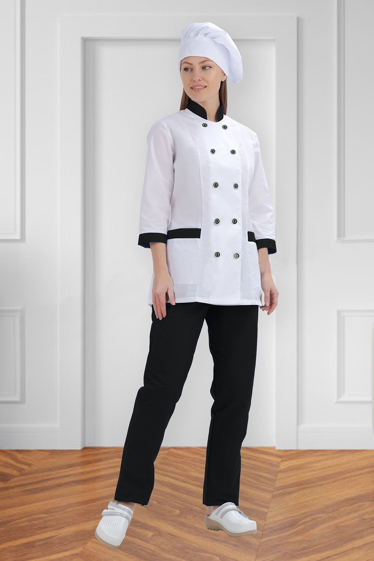 Костюм повара женский "Анабель" ТиСи (белый/черный) №УФР-Р-641-2