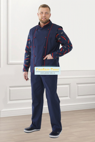 Костюм повара мужской "Чили" (темно-синий, тройка) №УФР-Р-962