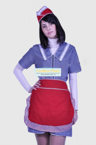 Передник с рюшей габардин (бордо/полоса) №УФР-ТР-66-11