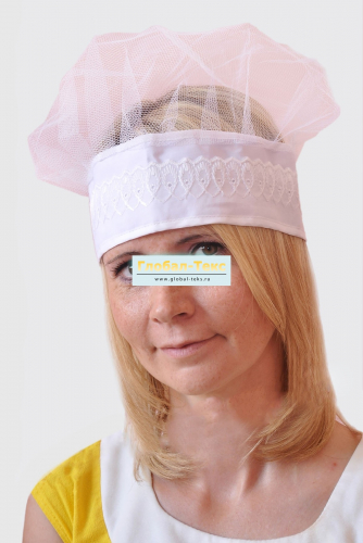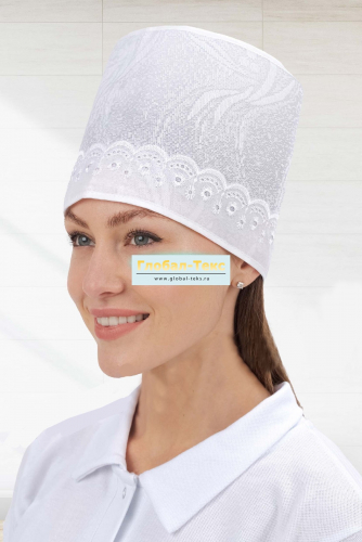 Кокошник белый с шитьём габардин №УФР-ТР-75