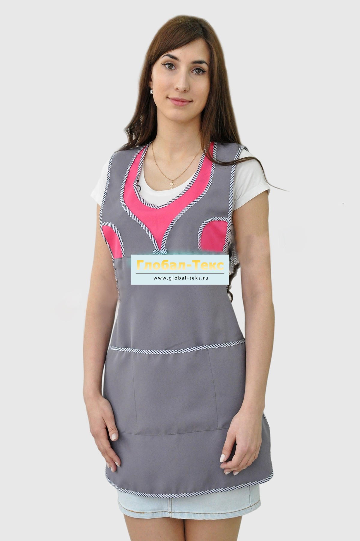 Фартук "Каприз" габардин (серый/розовый) №УФР-ТР-55-1