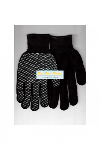 Перчатки нейлоновые с ПВХ черные №ЛТК-П-117