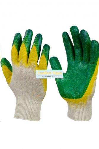 Перчатки трикотажные с 2-ым латексным обливом (зеленые) №ЛТК-П-109
