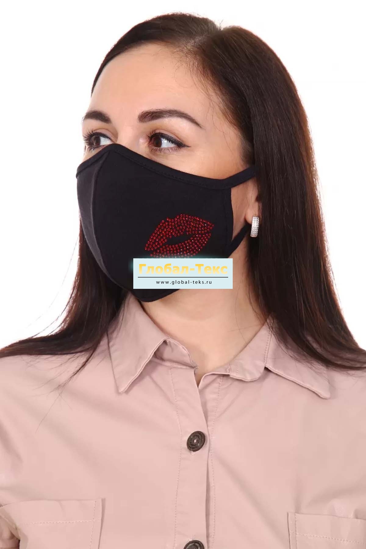 Повязка для лица со стразами "Губы" №ЛТ-1120-2