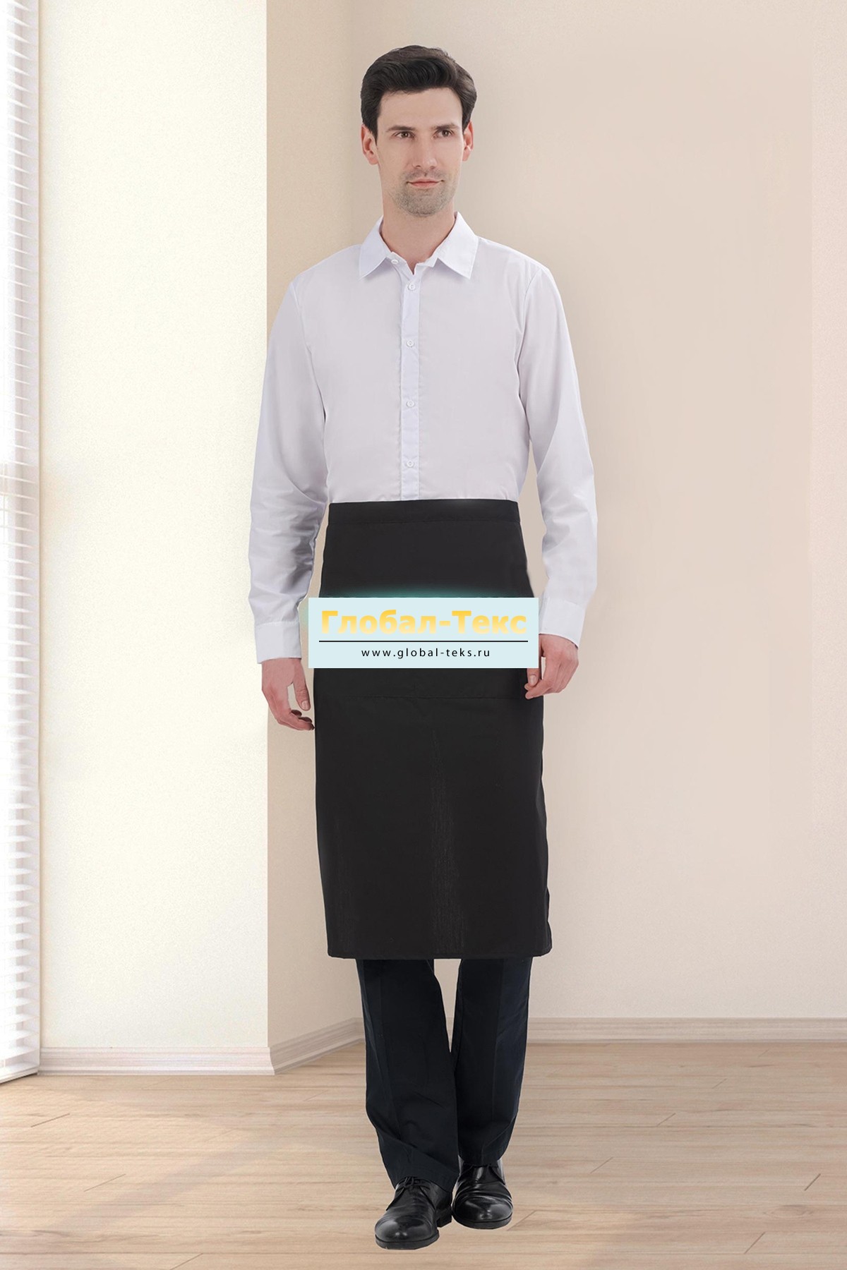 Фартук официанта мужской "Блэк" Твил (черный) №УФР-ТР-623