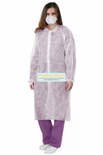 Халат одноразовый на липучках (40 гр/кв.м) спанбонд №УФР-МЕД-121