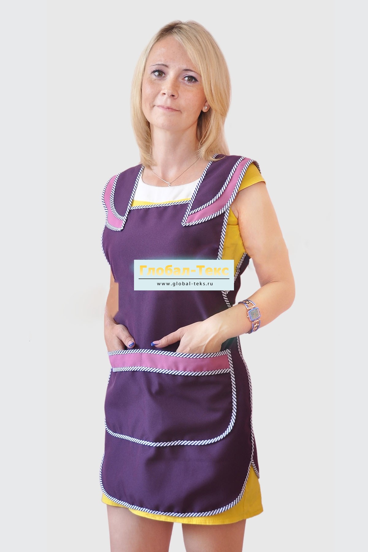 Фартук "Блюз" габардин (баклажан/брусника) №УФР-ТР-46-7