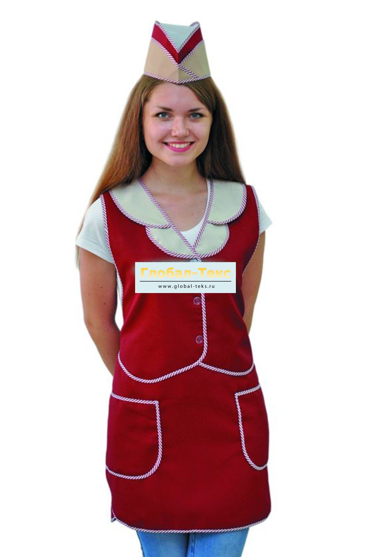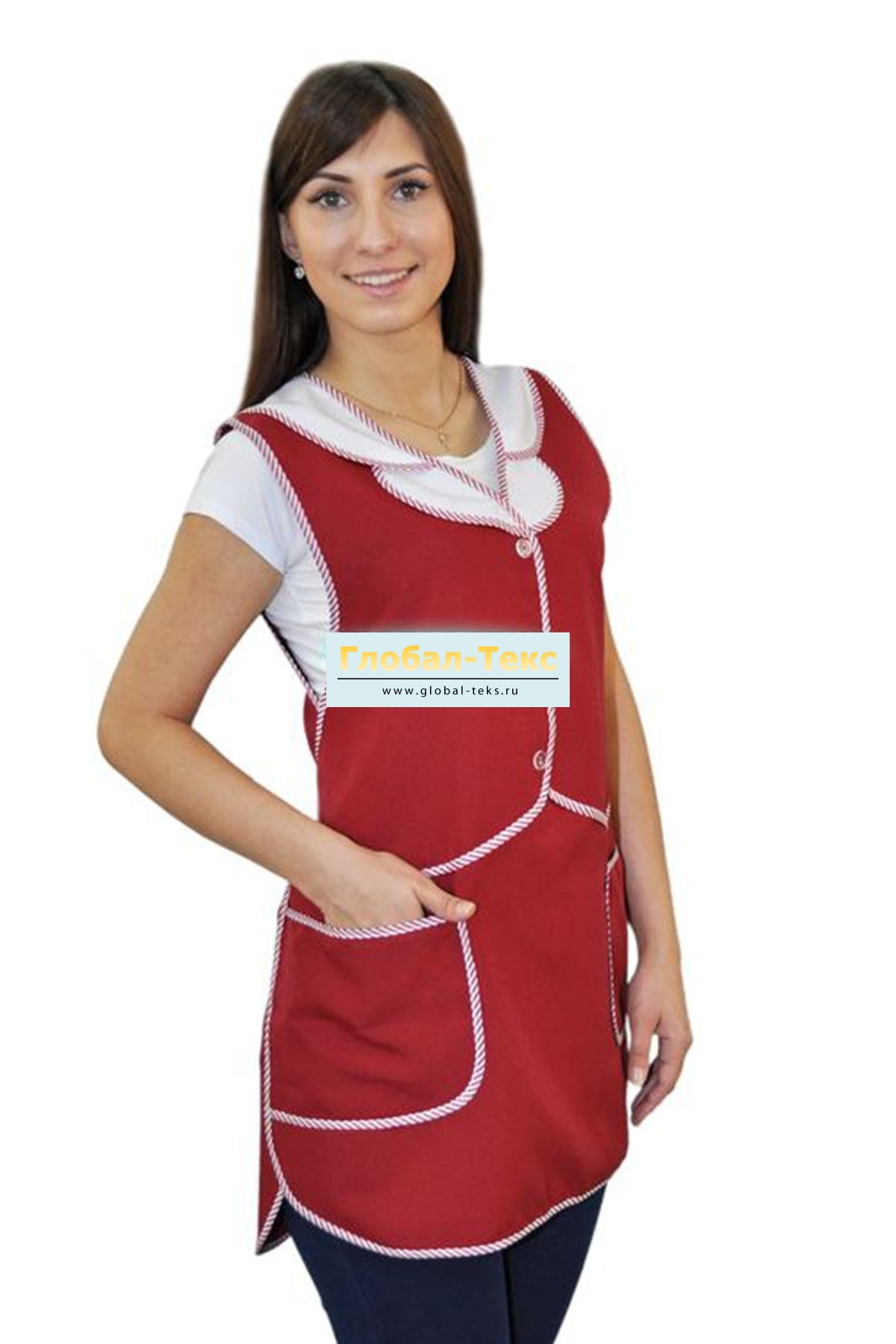 Фартук "Жилетка" габардин (бордо/белый) №УФР-ТР-39-3