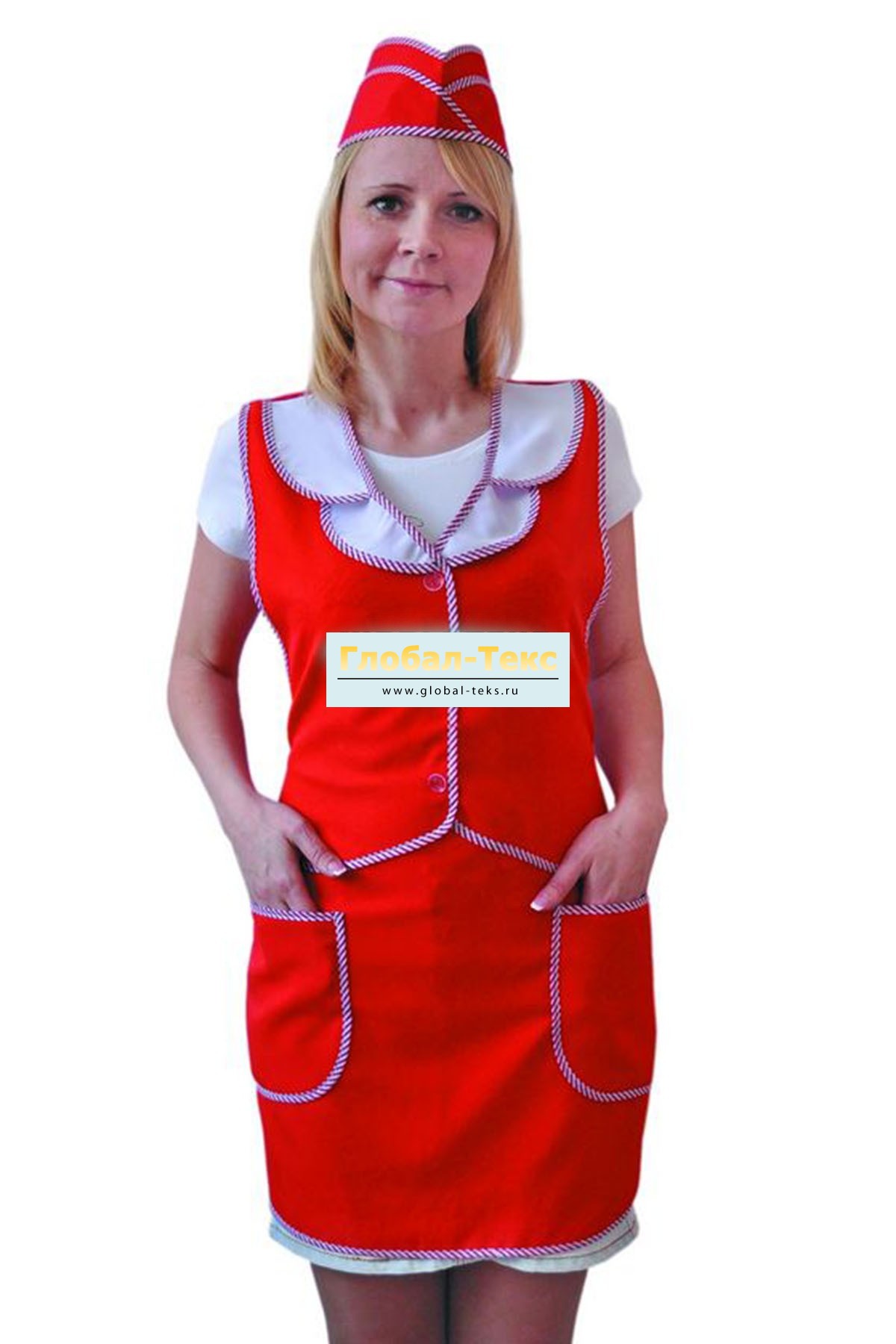 Фартук "Жилетка" габардин (красный/белый) №УФР-ТР-39-13