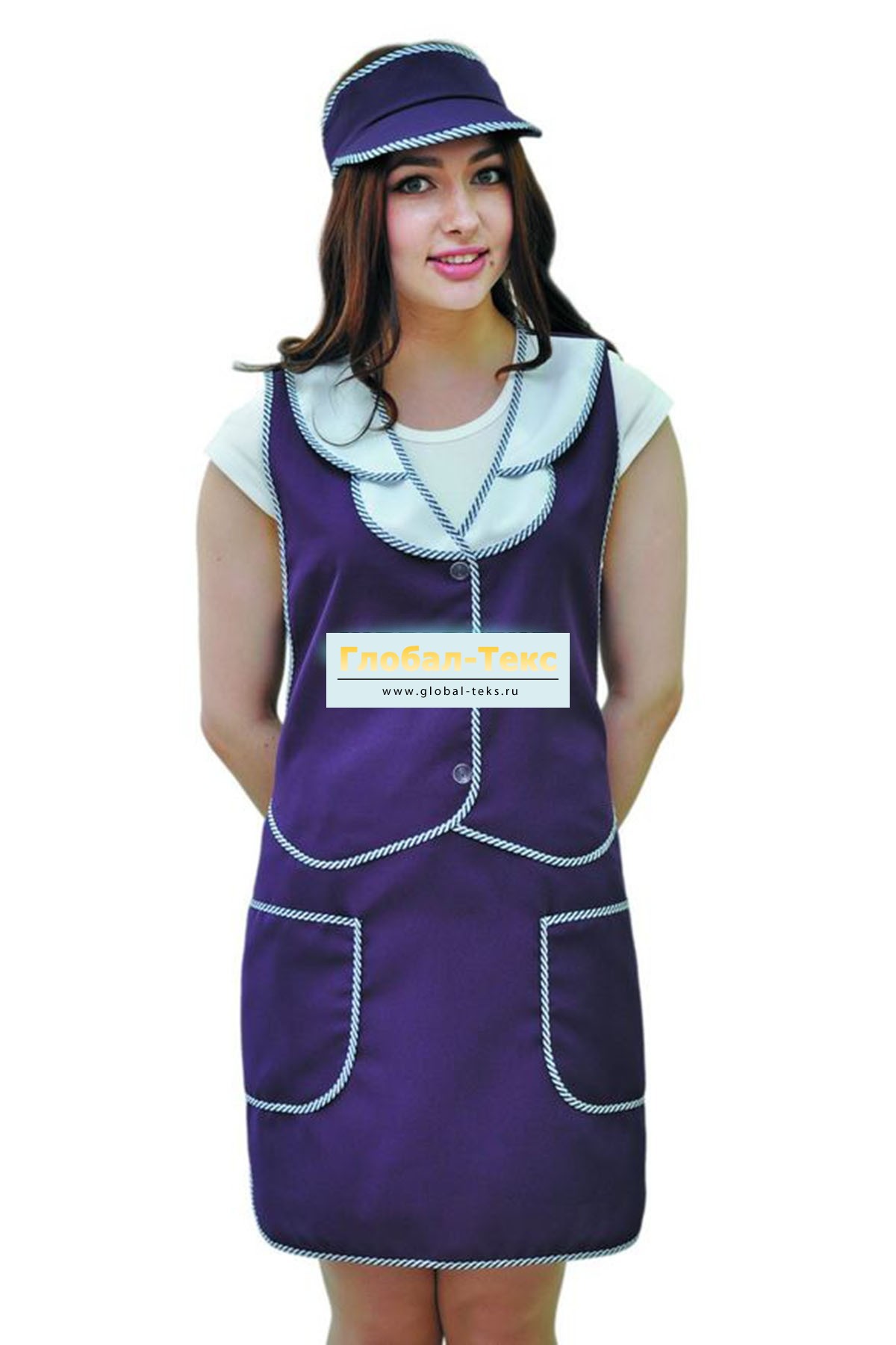 Фартук "Жилетка" габардин (баклажан/белый) №УФР-ТР-39-5