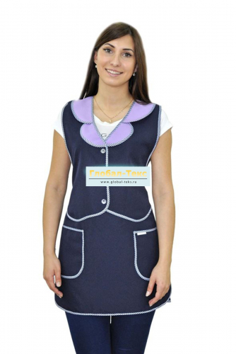 Фартук "Жилетка" габардин (тёмно-синий/сирень) №УФР-ТР-39-6