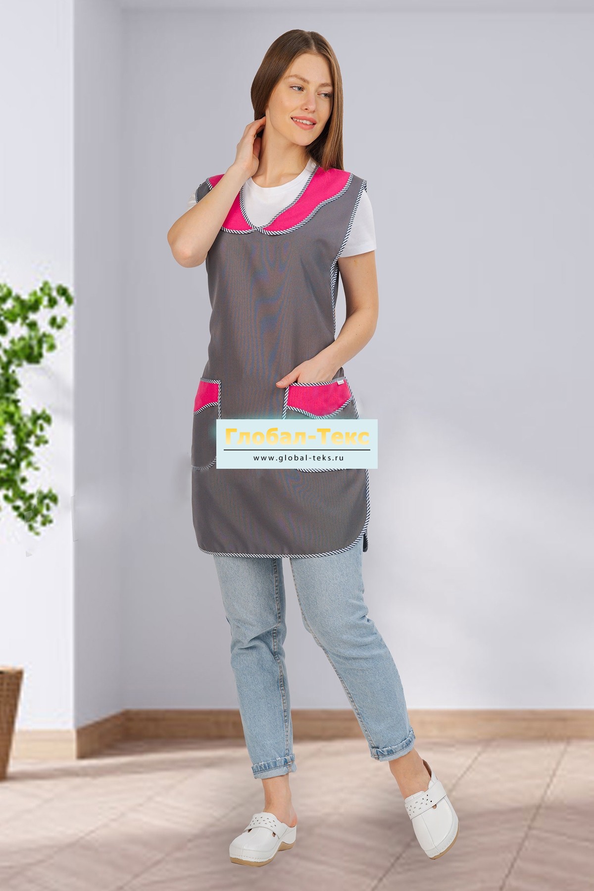 Фартук "Дюймовочка" габардин (серый/розовый) №УФР-ТР-57
