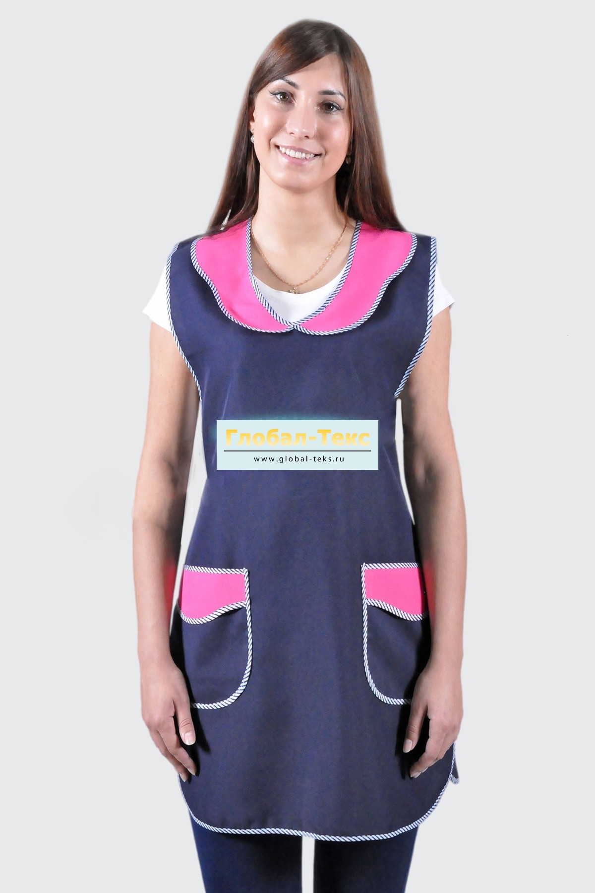 Фартук "Дюймовочка" габардин (тёмно-синий/розовый) №УФР-ТР-57-6