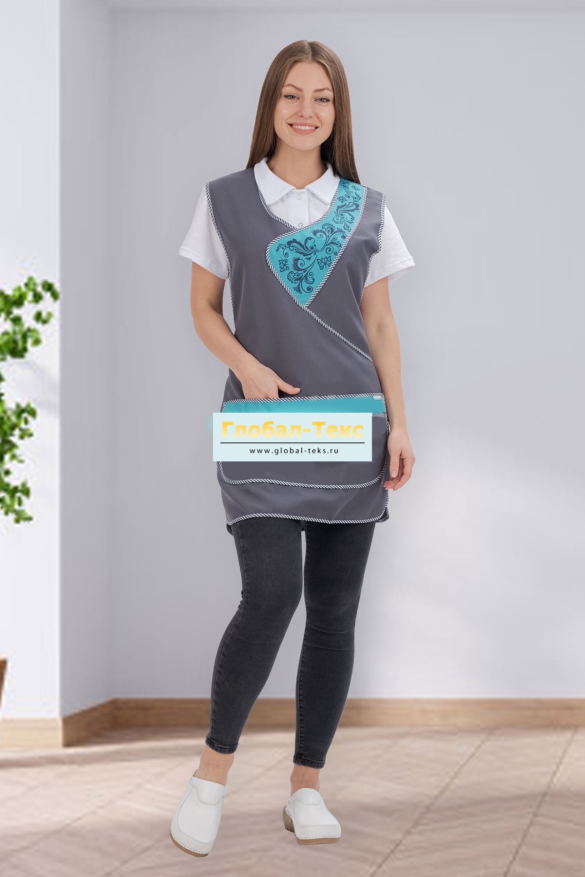 Фартук "Нежность" габардин (серый/бирюза) №УФР-ТР-43-5