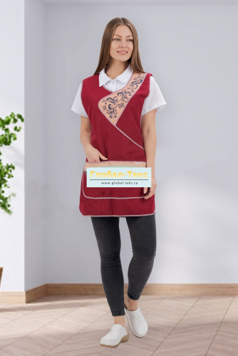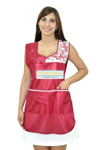 Фартук "Нежность" габардин (бордо/персик) №УФР-ТР-43-3