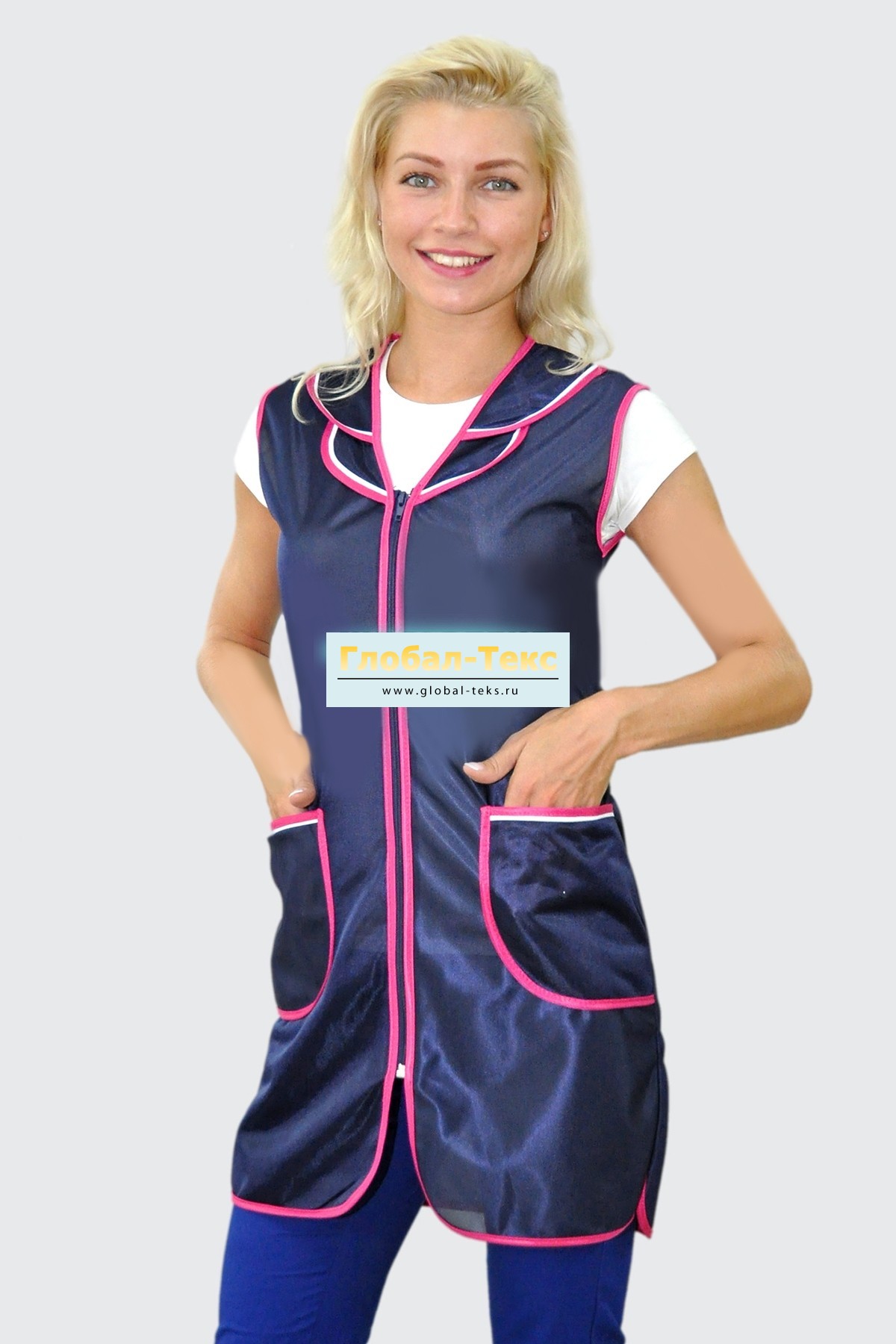 Фартук "Нежность" габардин (тёмно-синий/розовый) №УФР-ТР-43