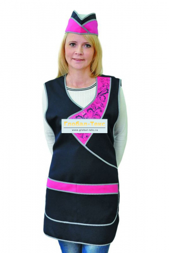 Фартук "Нежность" габардин (чёрный/беж) №УФР-ТР-43-2