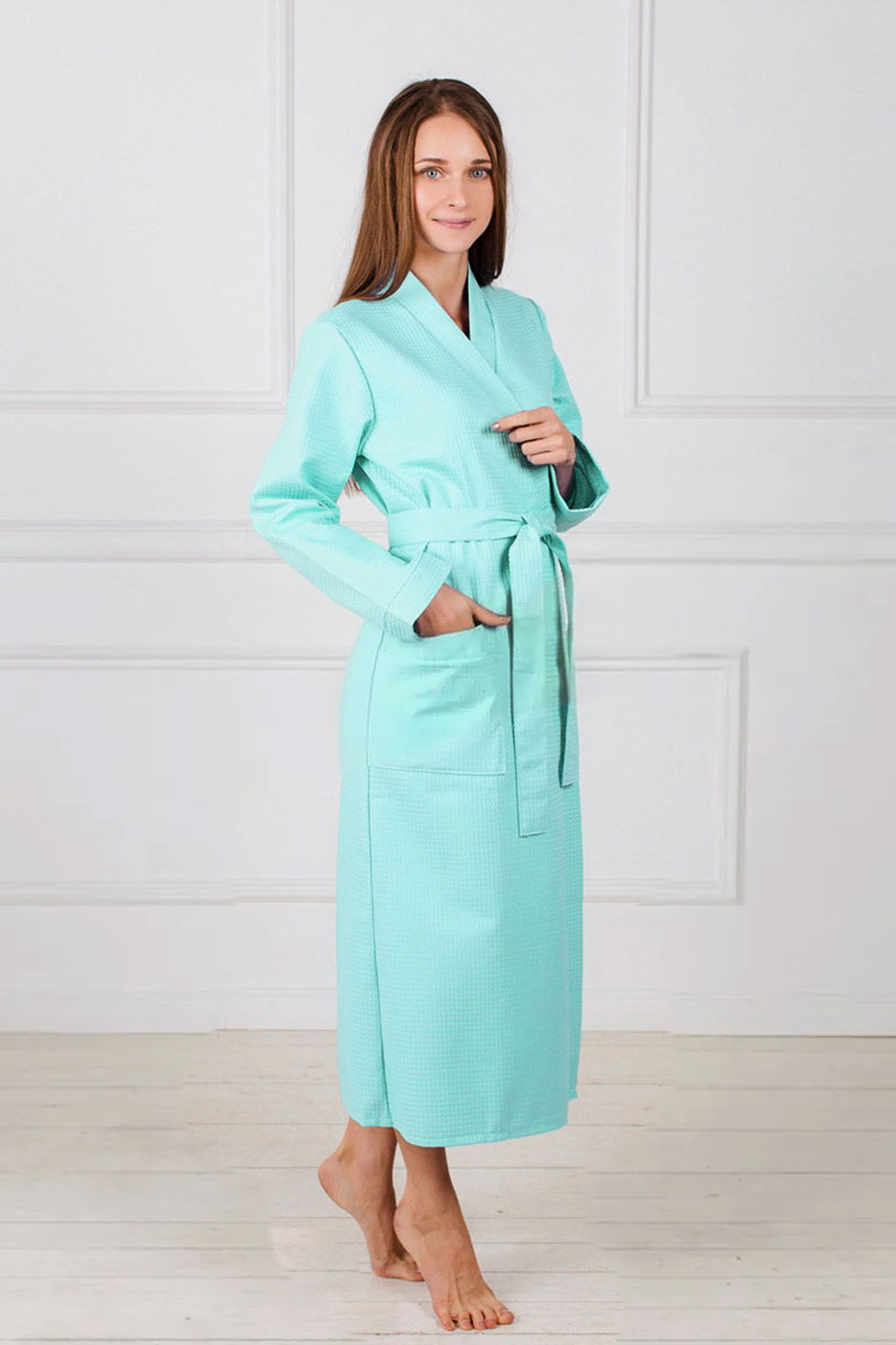 Халат вафельный женский с планкой (бирюзовый) №УФР-Х-1007-8