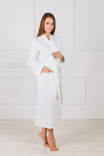 Халат вафельный женский с планкой (белый) №УФР-Х-1005