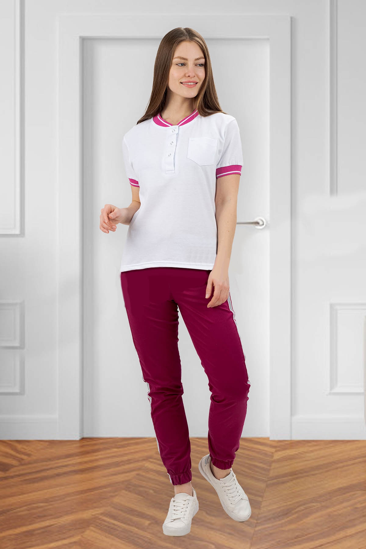 Футболка-поло женская "Амина" (розовые полоски) №УФР-Ф-1012-1