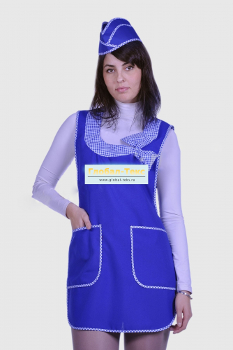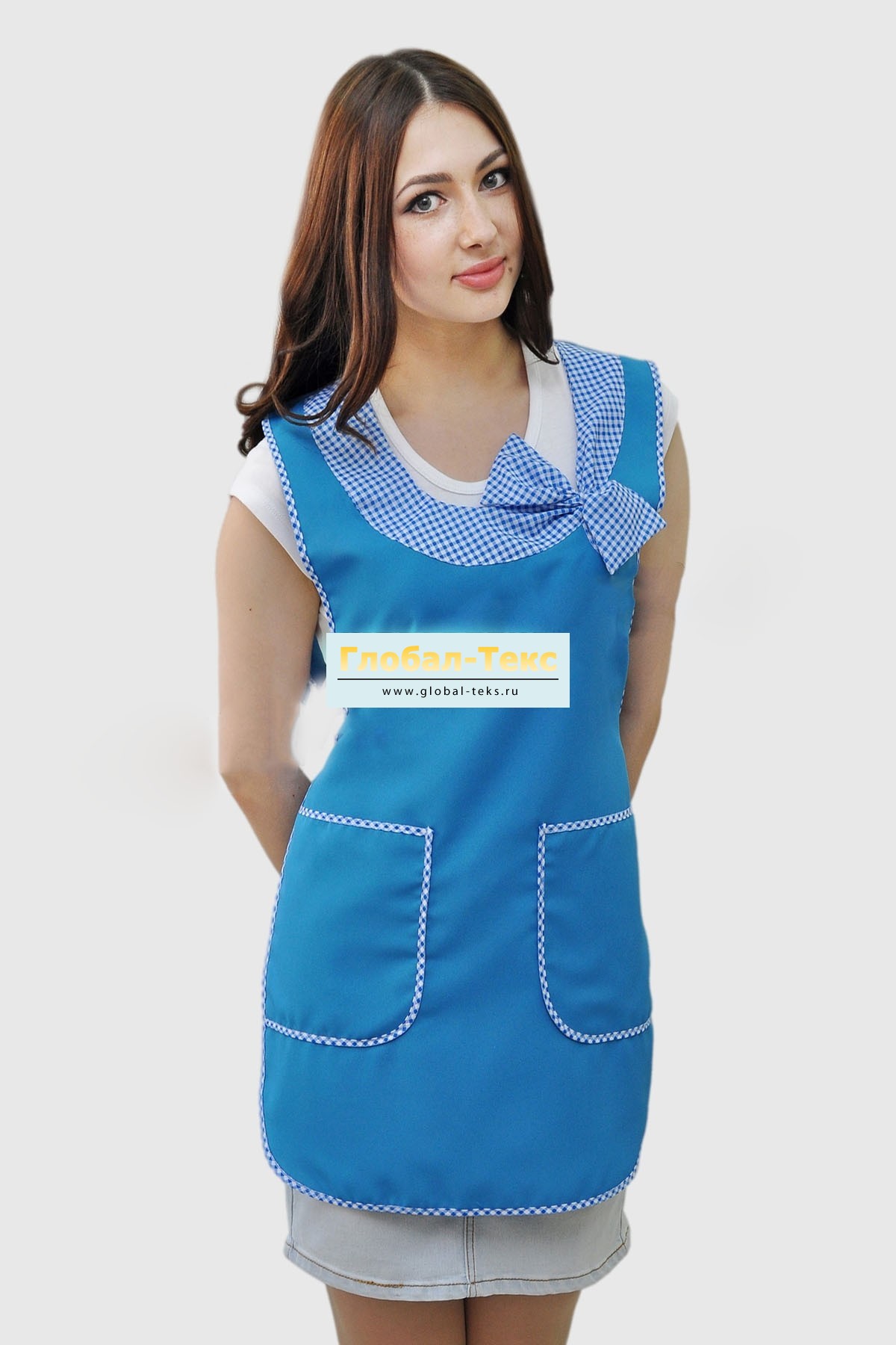 Фартук "Бантик" габардин (василёк/клетка) №УФР-ТР-49-2