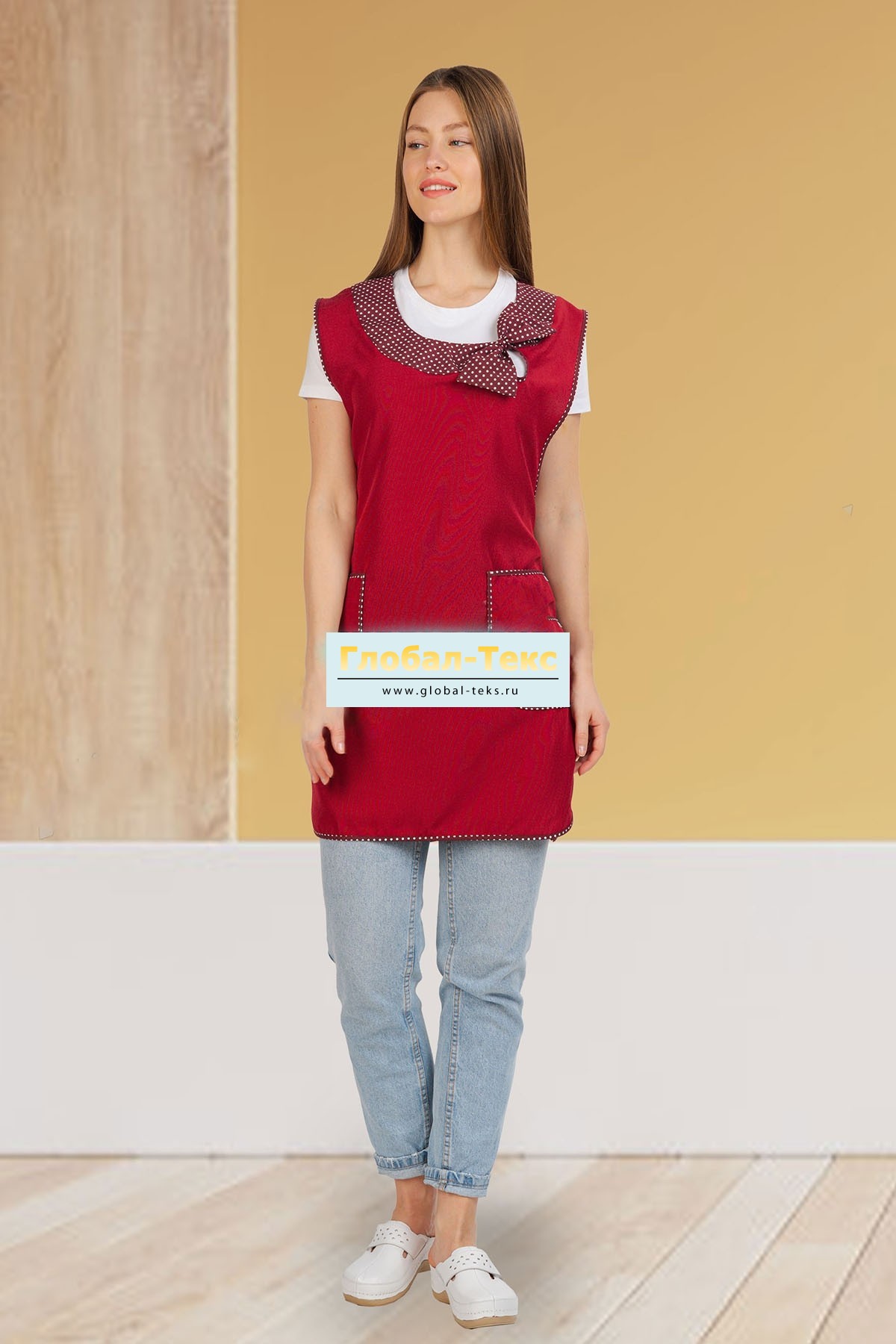 Фартук "Бантик" габардин (бордо/горох) №УФР-ТР-49