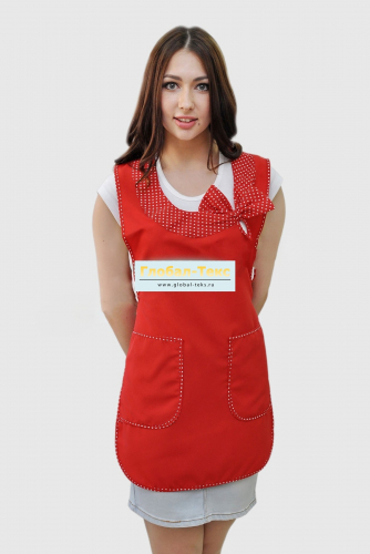 Фартук "Бантик" габардин (красный/горох) №УФР-ТР-49-4