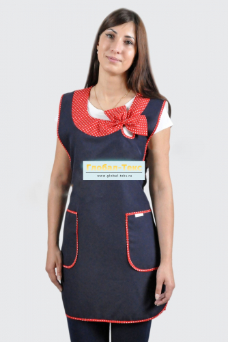 Фартук "Бантик" габардин (тёмно-синий/клетка красная) №УФР-ТР-49-8