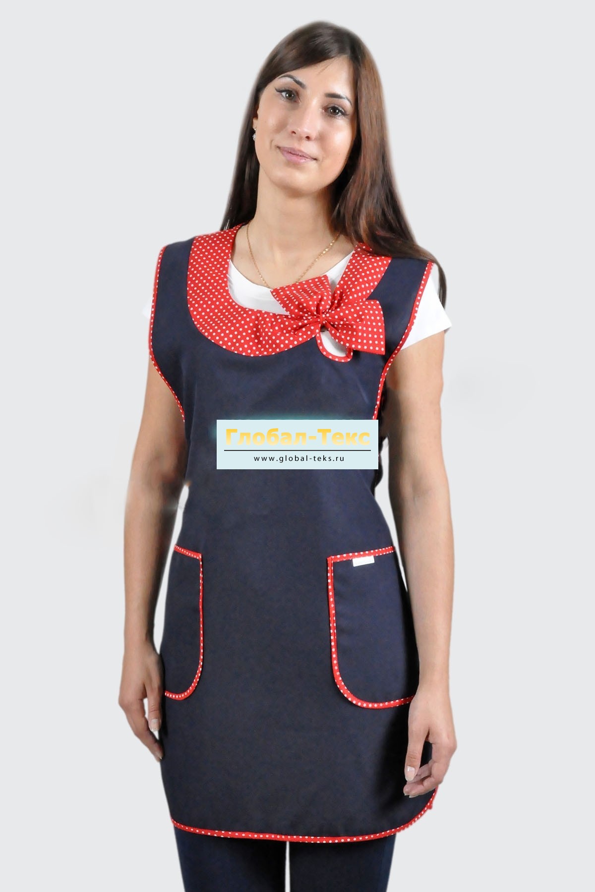 Фартук "Бантик" габардин (тёмно-синий/горох) №УФР-ТР-49-7