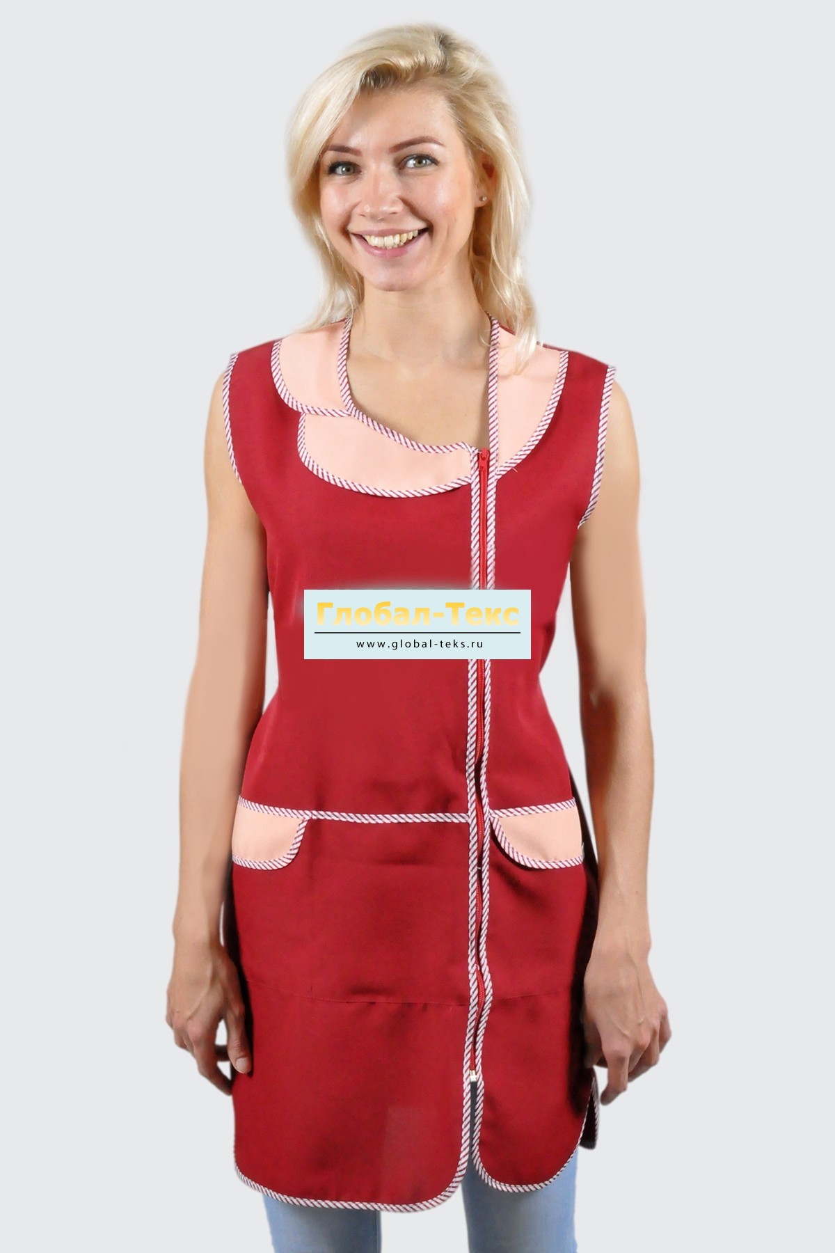 Фартук "Бантик" габардин (бордо/клетка) №УФР-ТР-49-11
