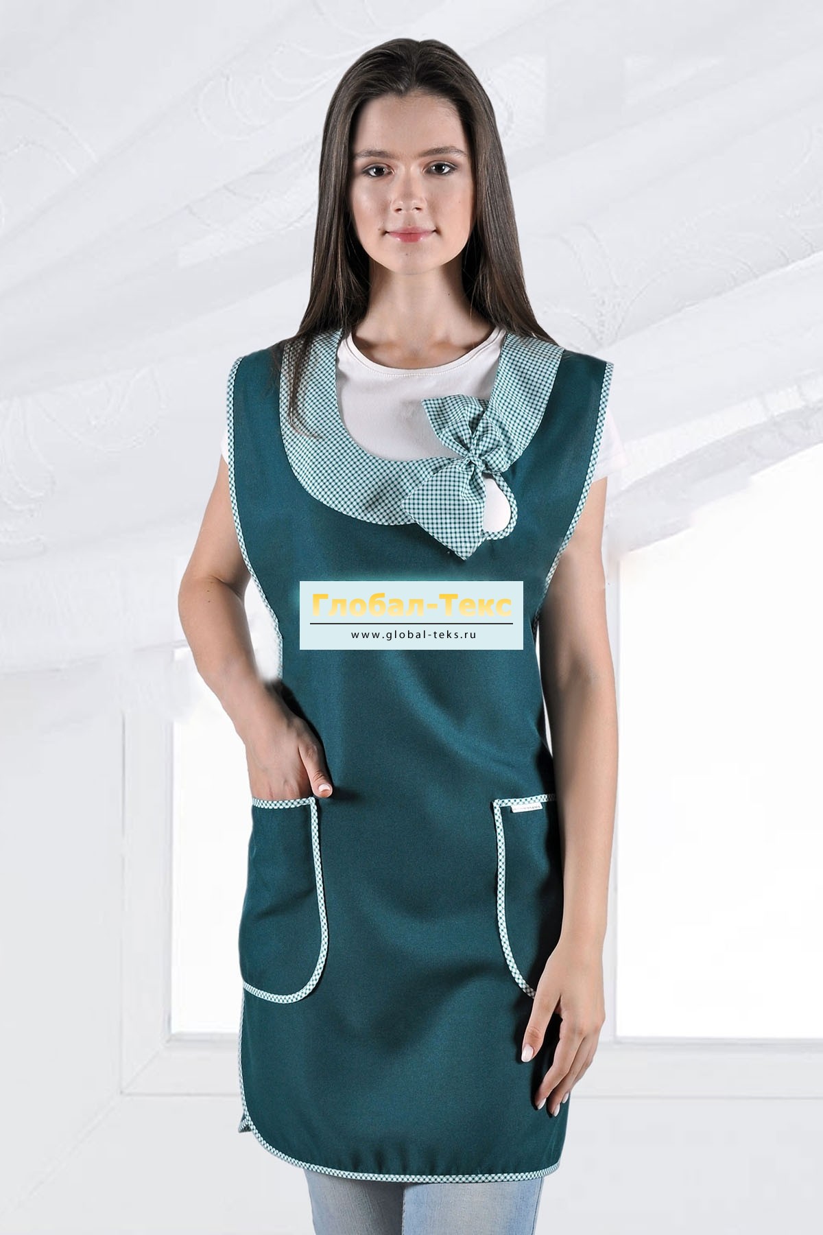Фартук "Бантик" габардин (изумруд/клетка) №УФР-ТР-49-10