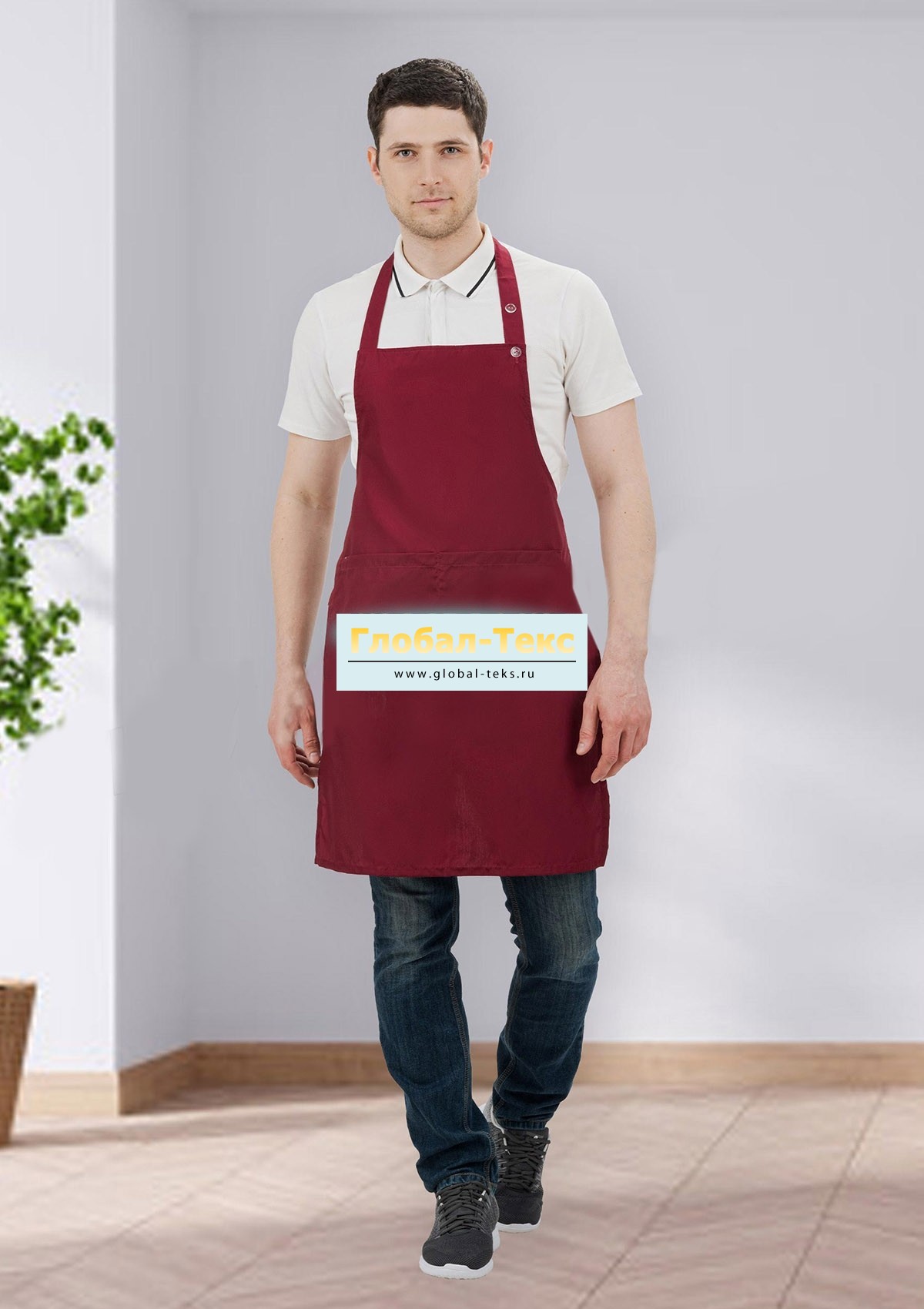 Фартук мужской "Универсал" (тиси, бордо) №УФР-ТР-177-2