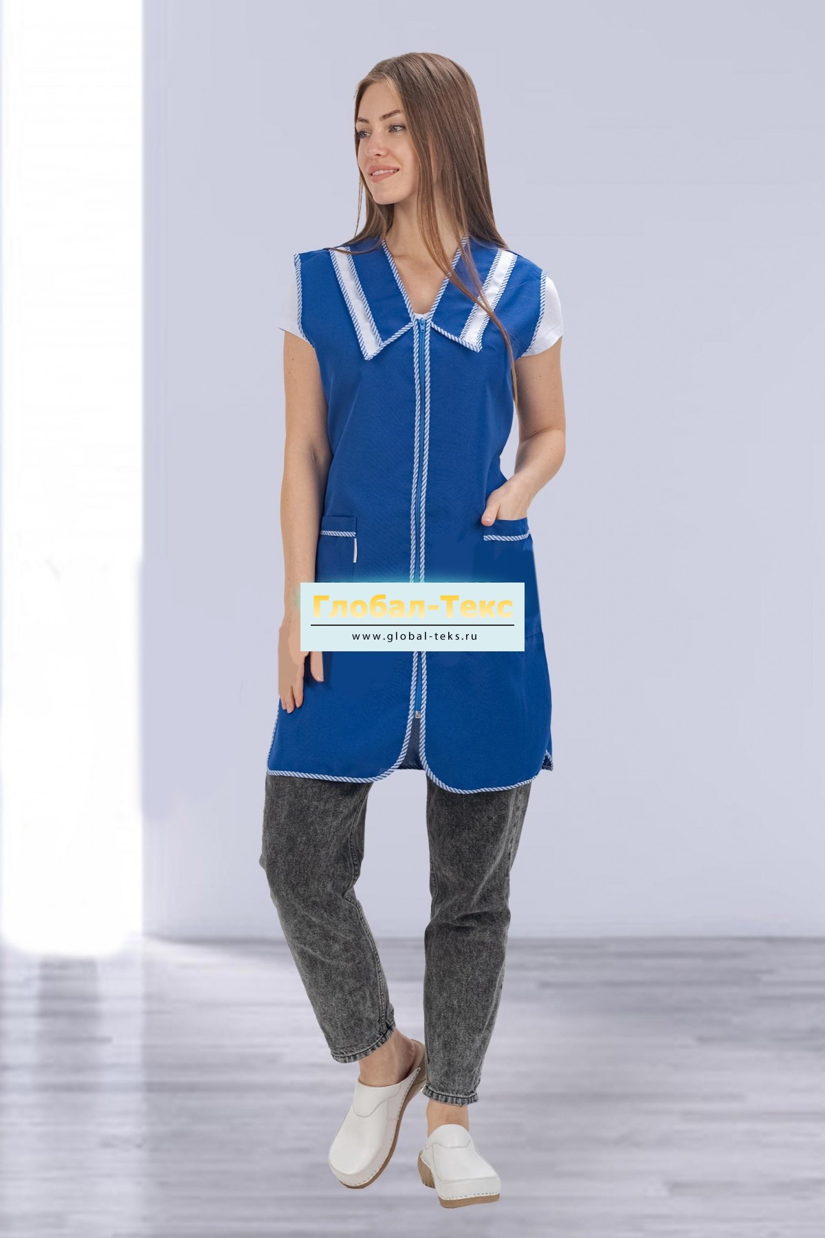 Фартук женский "Универсал" (тиси, василек) №УФР-ТР-366