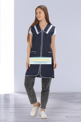 Халат "Ваниль" габардин (тёмно-синий/лиловый) №УФР-ТР-8-3