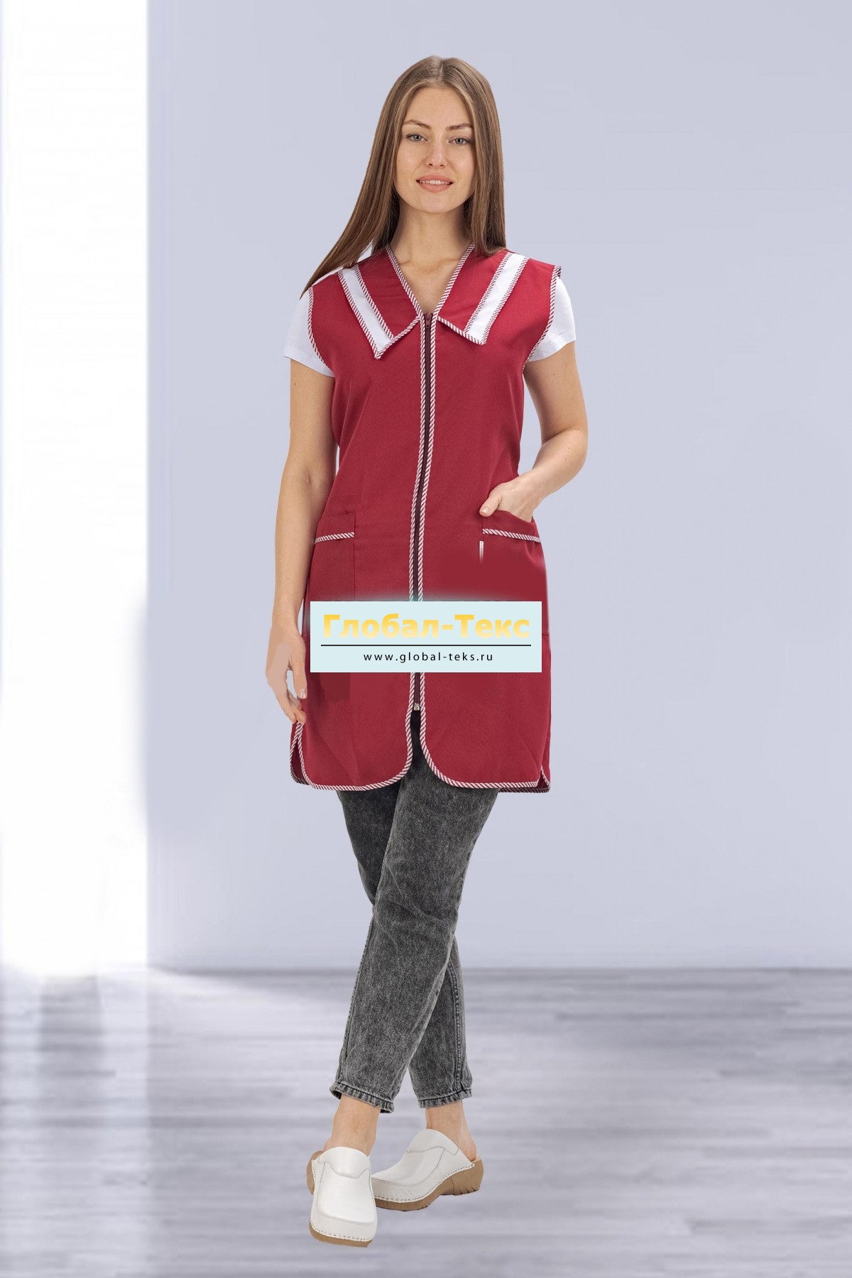 Халат "Классика" габардин (бордовый) №УФР-ТР-1-1