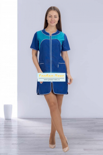 Халат "Англичанка" габардин (василёк) №УФР-ТР-7-2
