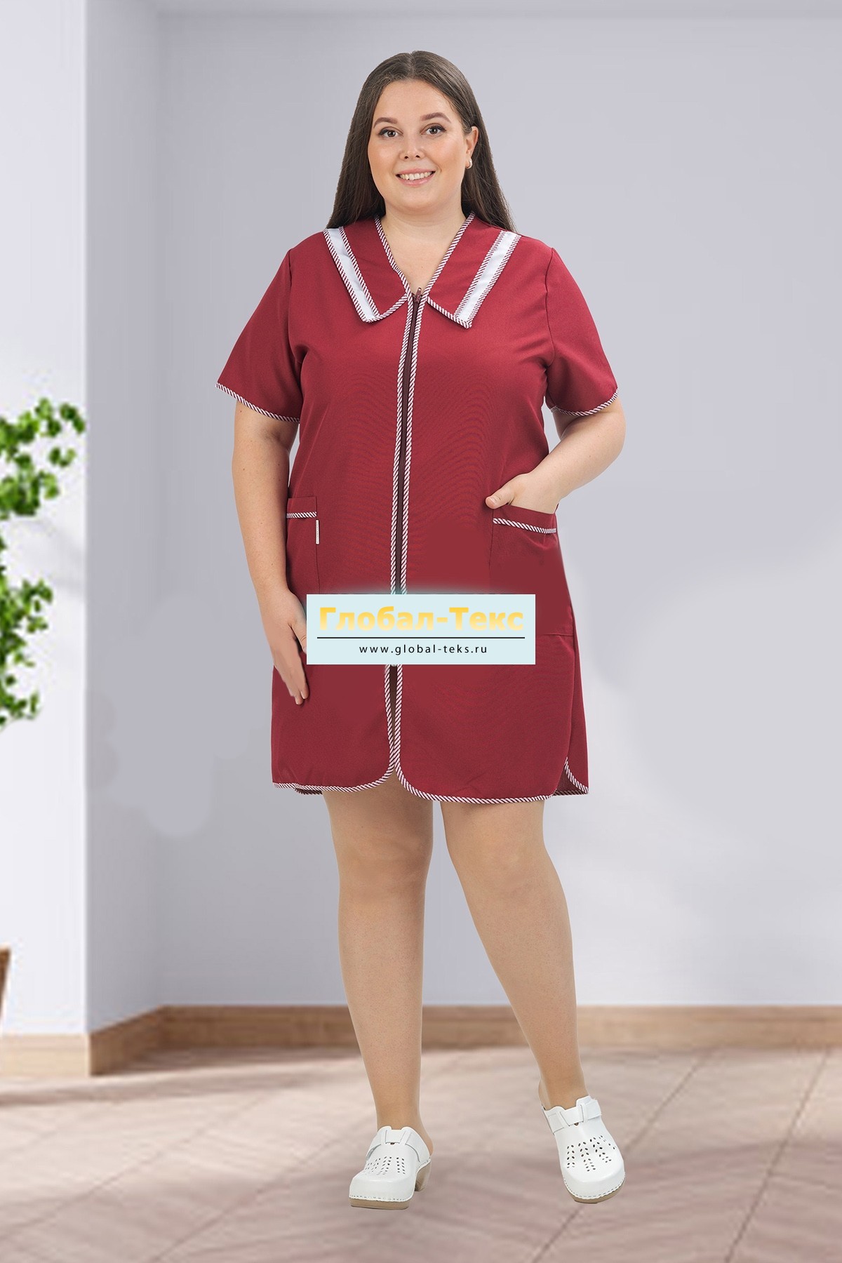 Халат "Сара" габардин (бордовый) №УФР-ТР-13