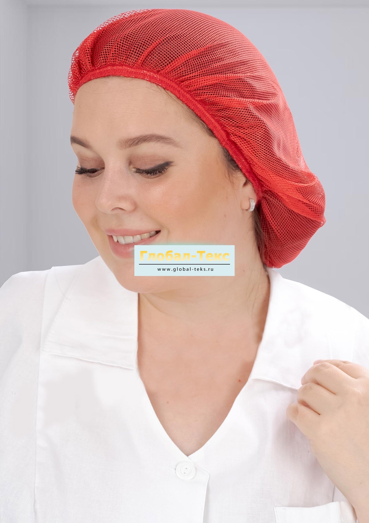 Шапочка многоразовая для медработников "Шарлотта" (сетка, красный) №УФР-МЕД-453-2
